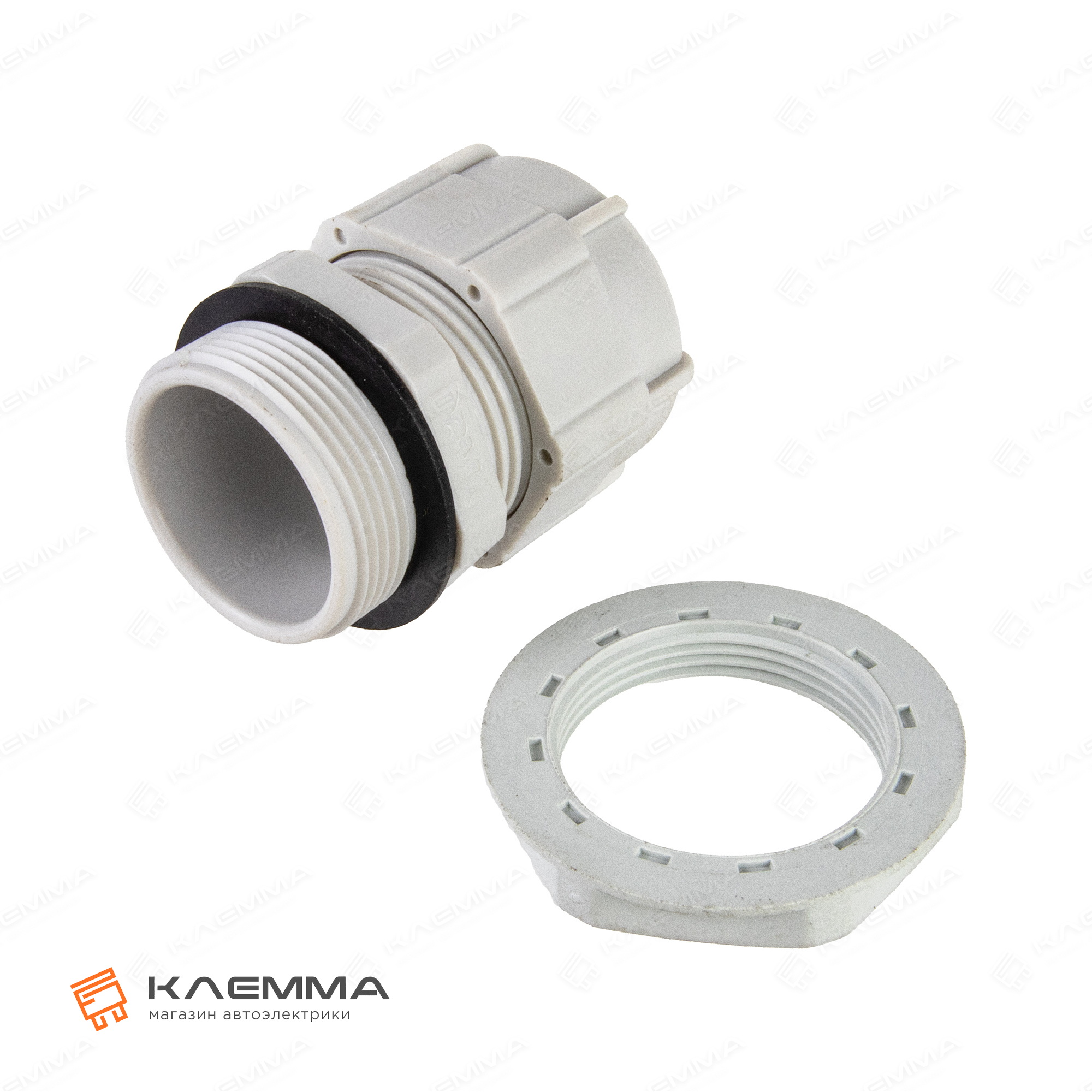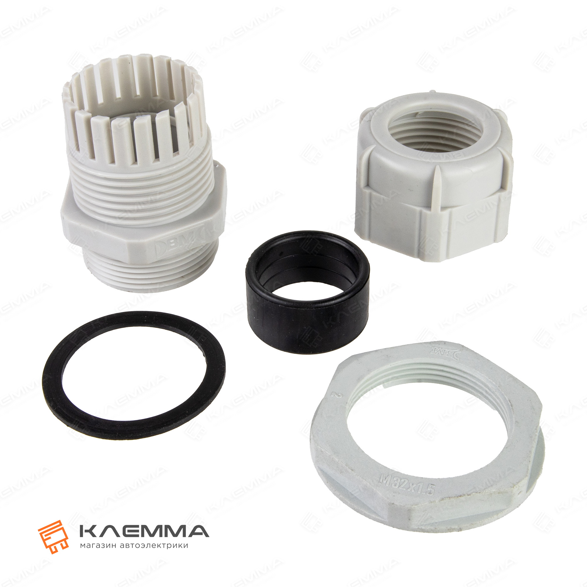Кабельный ввод серый, короткая резьба М32 (BM-Group), для трубки 16-21 мм