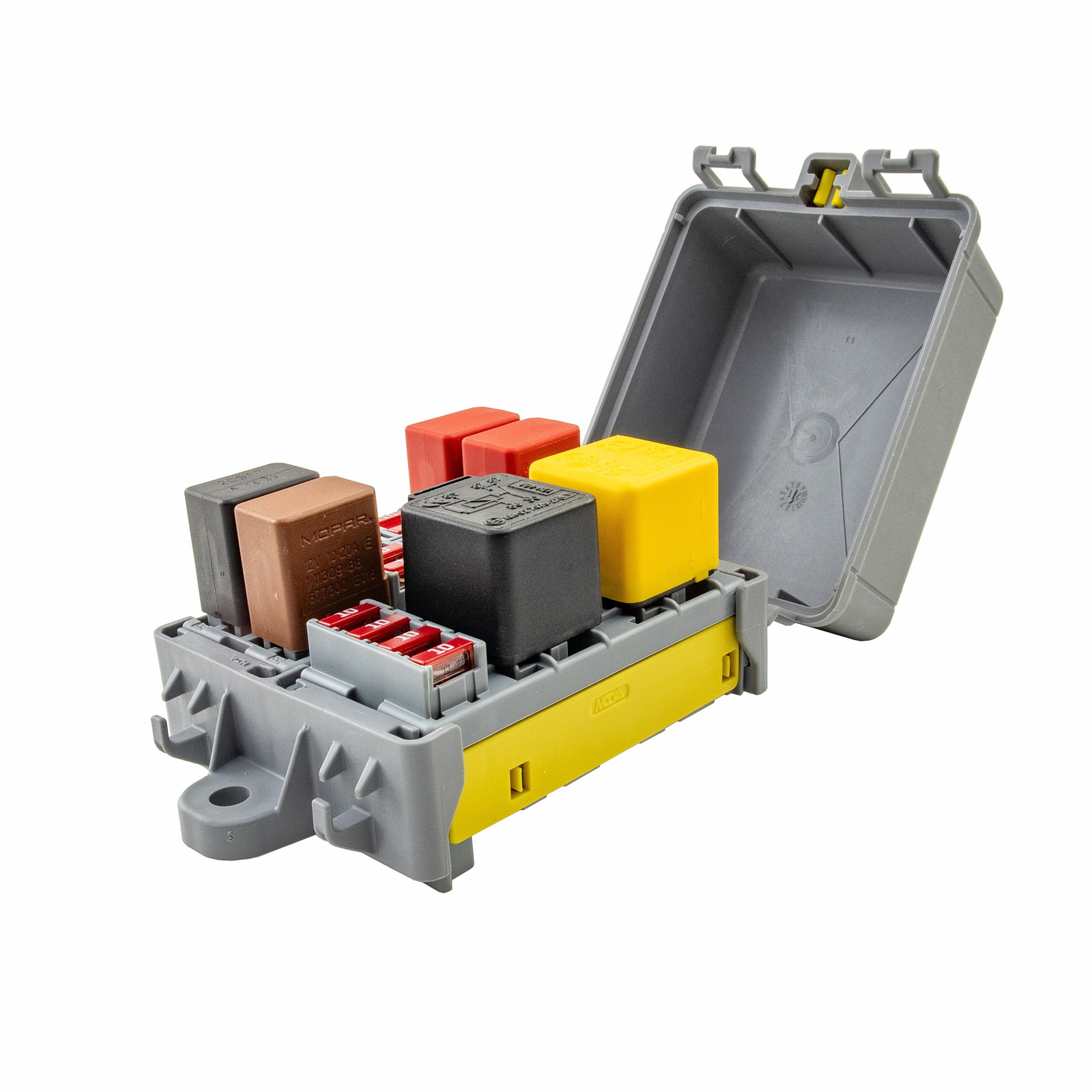 Крышка используется для защиты от внешнего механического воздействия модульных блоков и их компонентов. Крепится к держателям с помощью отформированных на корпусе крышки фиксаторов. На крышке также имеется гнездо для хранения извлекателя предохранителей.