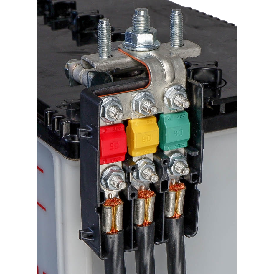 Распределительная коробка под монтаж трех предохранителей типа MIDIVAL (на ток от 30 до 125 ампер).
